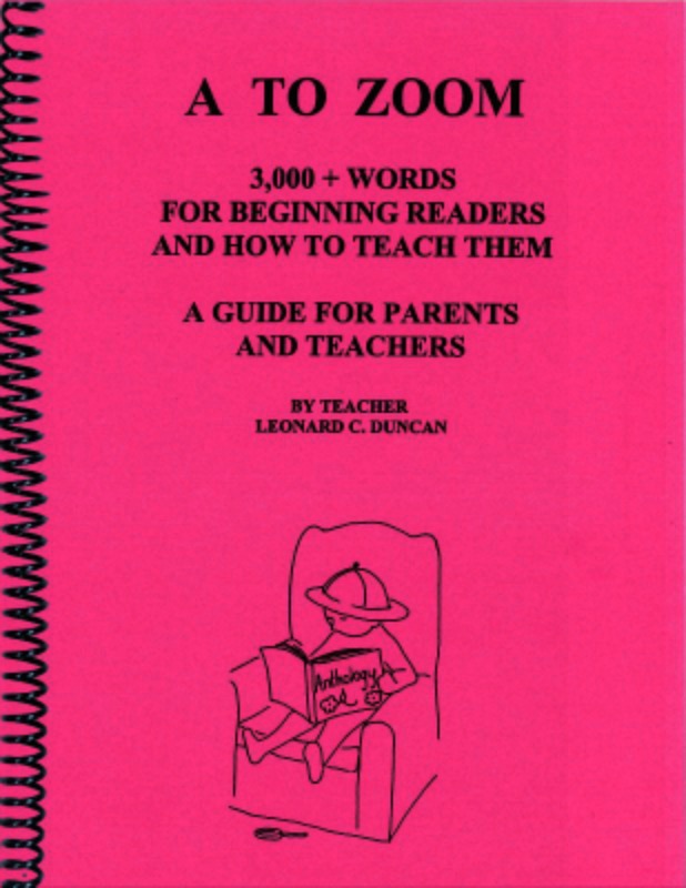 Parents, teachers and tutors learn how to teach 3,000 plus words to beginning readers in Duncan's instructional guide 'A To Zoom'. This 100 page guide instructs you on each page a necessary technique to master reading. For example:
